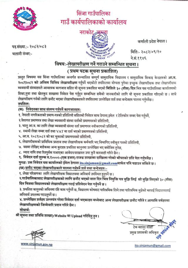 लेखापरिक्षण गर्ने गराउने सम्बन्धि सूचना