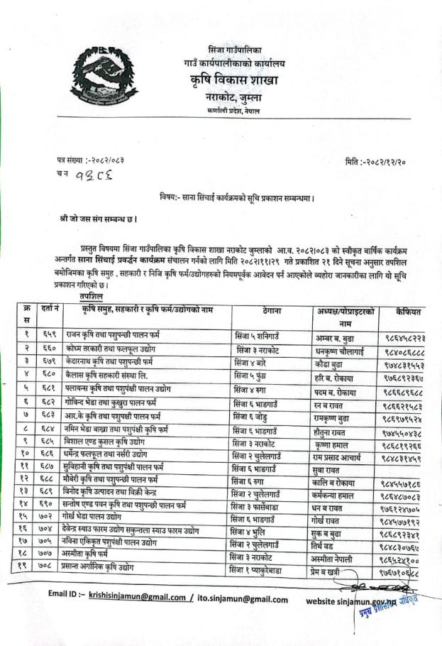 » साना सिंचाई कार्यक्रमको सूची प्रकाशन सम्बन्धमा ।